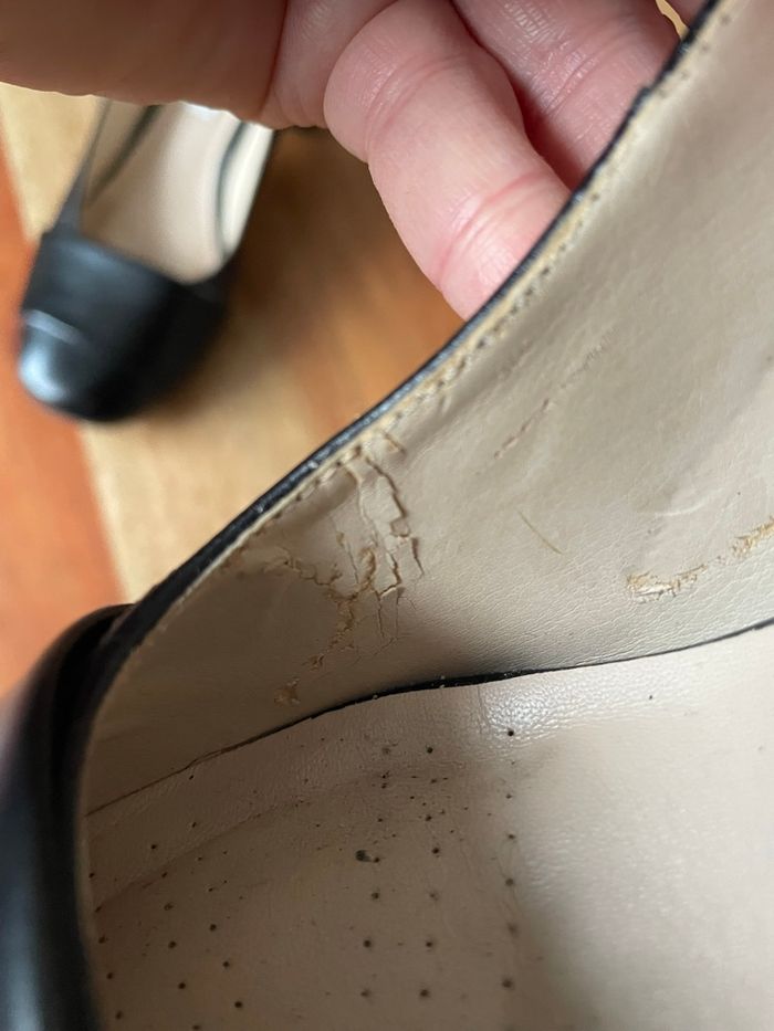 Très bon état général, une éraflure sur la chaussure gauche à l’intérieur et quelques usures à l’intérieur