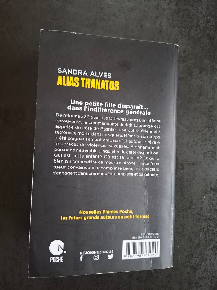 Thriller Alias Thanatos de Sandra Alves en très bon état