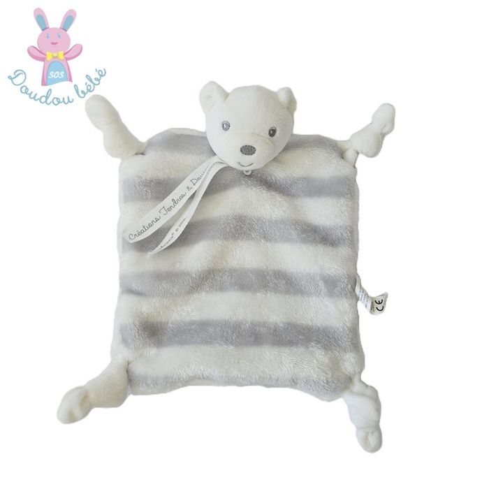 Doudou plat OURS collection Bébé Pastel Polaire tout doux gris et blanc Lien attache tétine (réf KAL-176) Occasion très bon état