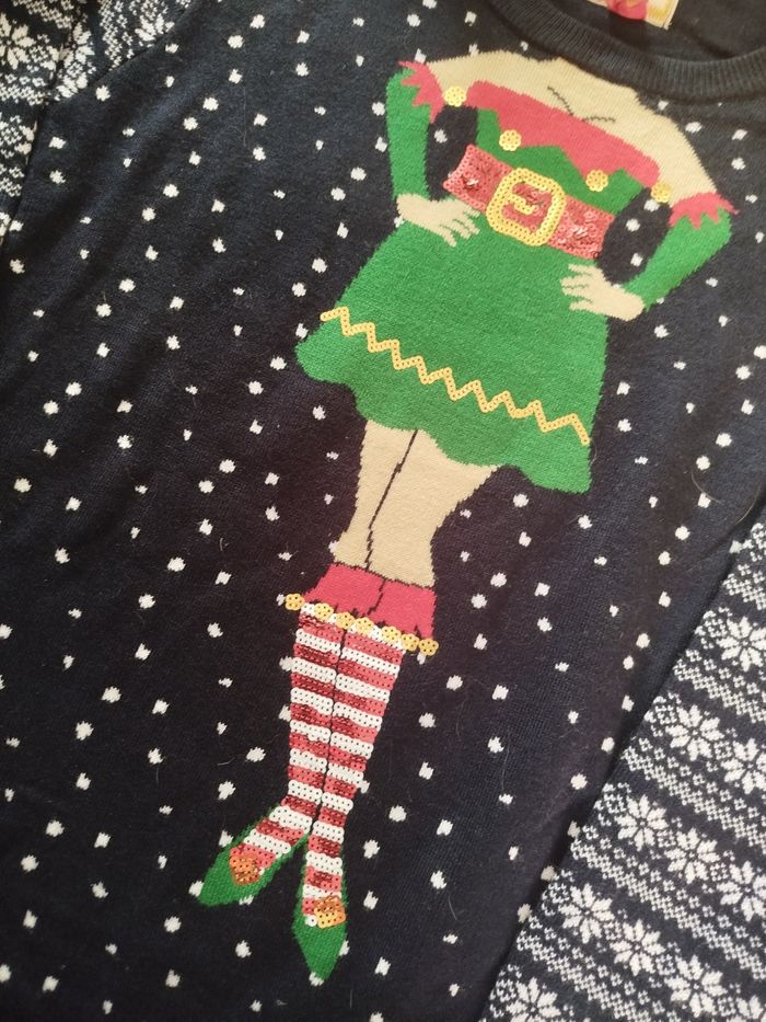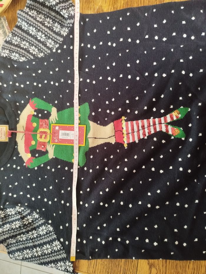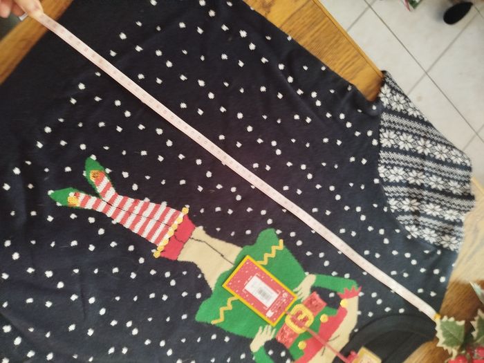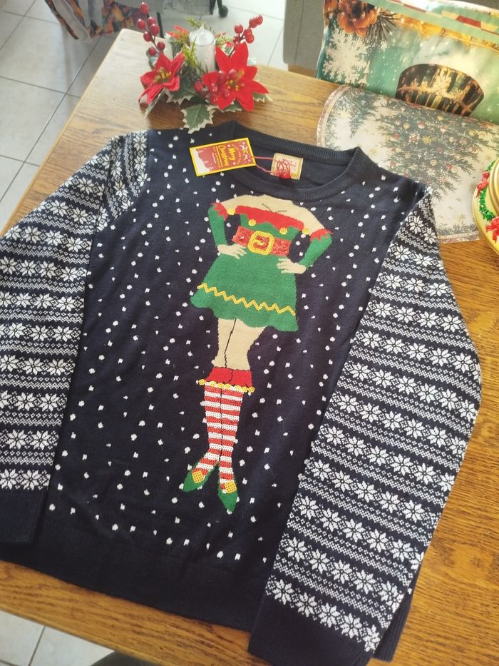 🎄✨ Pull de Noël Taille XL – Corps de Lutine à Sequins ! ✨🎄 Prête à transformer n’importe quelle pièce en atelier du Père Noël ? Ce pull de Noël tout neuf est fait pour toi ! Il affiche un corps de lutine à sequins, histoire que tout le monde sache que tu prends ton rôle d’assistante officielle du Père Noël très au sérieux… mais toujours avec style. 💃🎅 Idéal pour : briller (littéralement) aux soirées de fin d’année, gagner un concours du pull de Noël sans même forcer, ou simplement rappeler élégamment que la magie de Noël, c’est toi. 🎁 Taille : XL 🎁 État : totalement neuf, jamais porté, même pas par une lutine en stage. Prêt à faire scintiller ton mois de décembre ? ✨