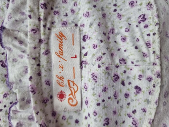 Haut de pyjama femme Ch-x-Family blanc à fleurs violettes taille L. Neuf sans étiquettes. Envoi rapide et soigné. Négociable.