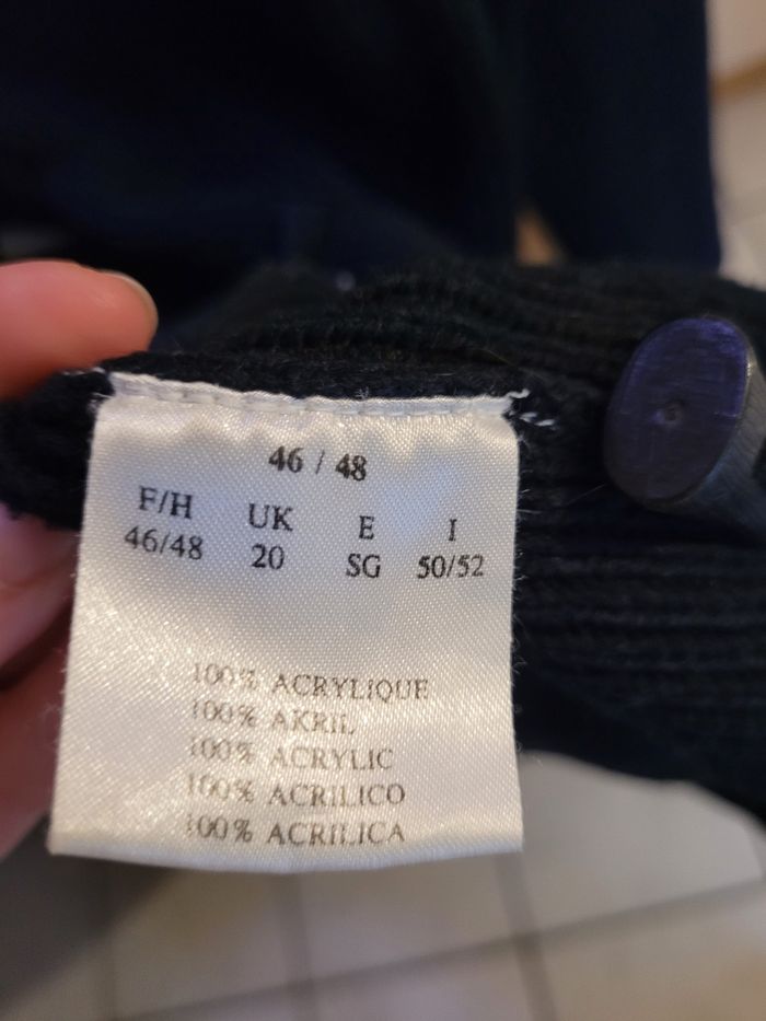 Taille 46/48 mais taille plutôt 42/44 Noir Beaucoup porté État satisfaisant (bouloché, décoloré) Aisselle à aisselle 50 cm Haut en bas 90 cm
