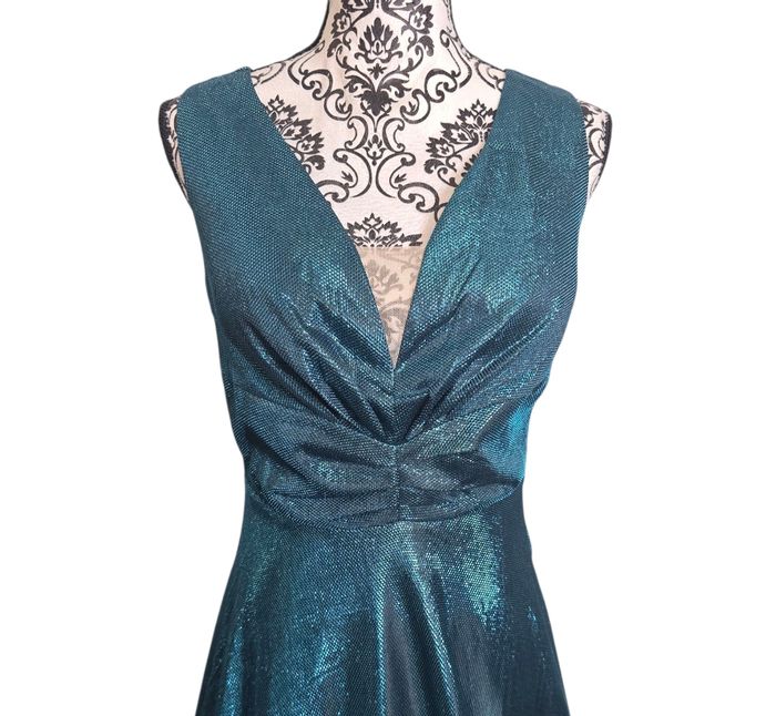 Robe bleu canard métallisé buste plissé Taille 36 S