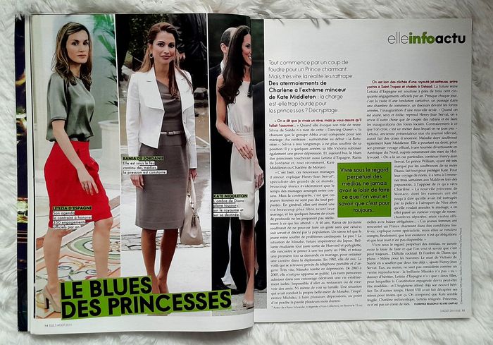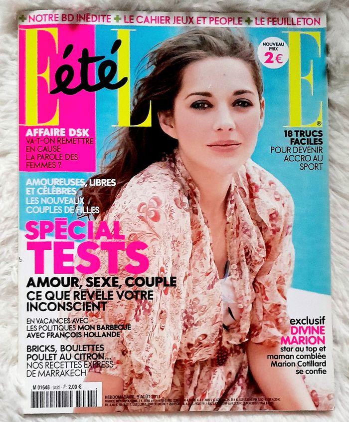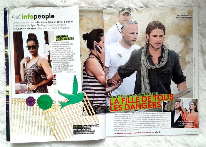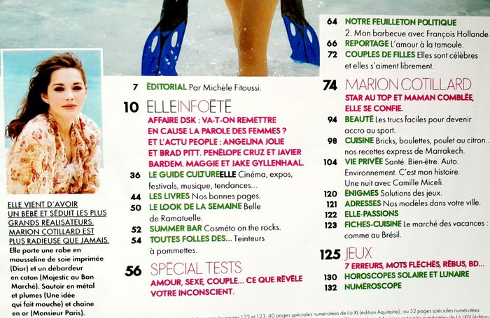 spécial : le blues des princesses, Brad et Angie 2 pages, tests, l'amour à la tamoule, elles s'aiment librement, Marion 20 pages, devenir accro au sport, cuisine marrakech, Doutzen Kroes 1 page, Elle jeux..