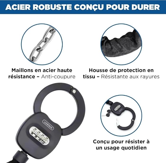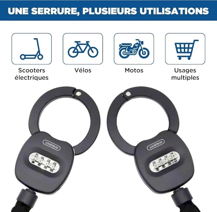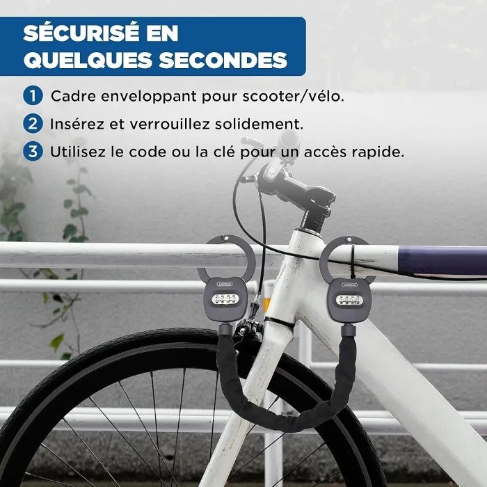 Antivol Trottinette Électrique – Cadenas Menotte à Code 4 Chiffres, Acier Renforcé 2,1 kg avec Étui, Sécurité Vélo, Scooter, Moto, Poussette, Antivol Sans Clé avec Câble