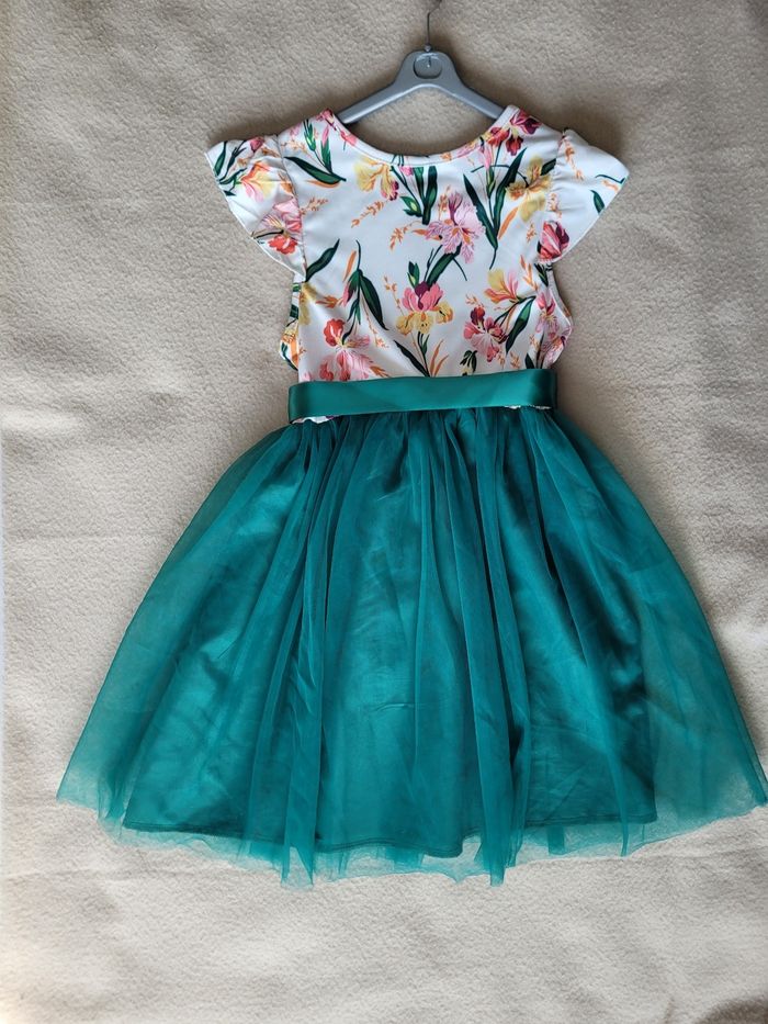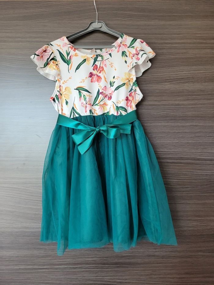 Robe d'été 130 cm Neuve Vert et blanc fleuri Robe d'été de princesse, jupe en tulle, taille petit plutôt petit 8 ans ou 7 ans à mon goût Acheté sur Amazon