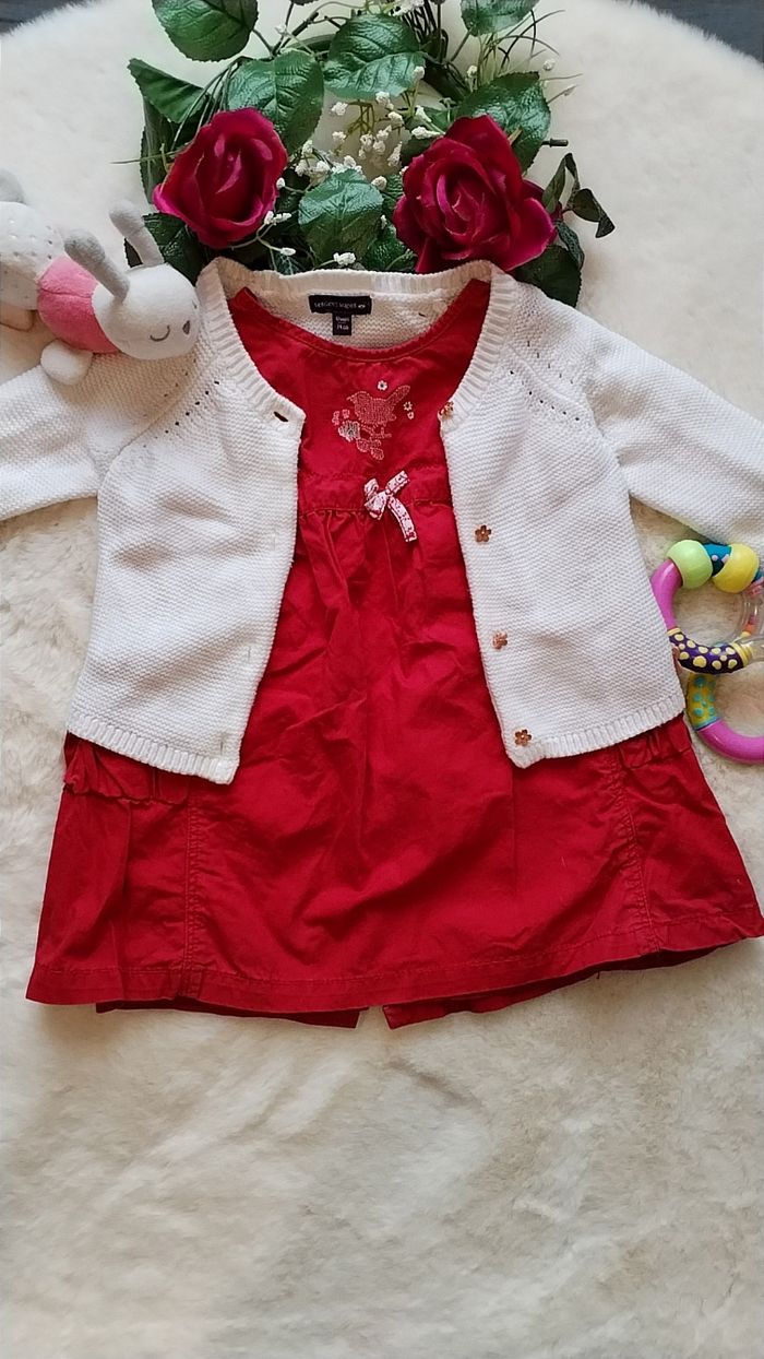 Ensemble Robe Rouge & Cardigan Blanc Sergent Major 12 mois (74 cm) - photo numéro 1
