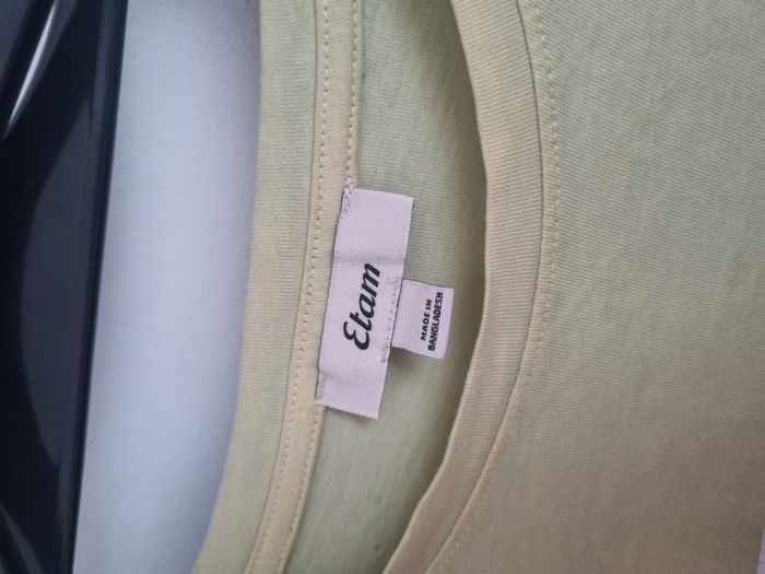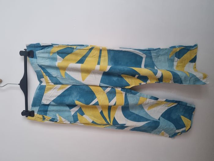 Ensemble 2 pièces pyjama pantalon et t-shirt bleu et jaune motif au craquelé Etam Haut L Bas XL 100% coton et 100% viscose