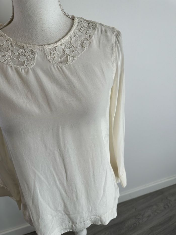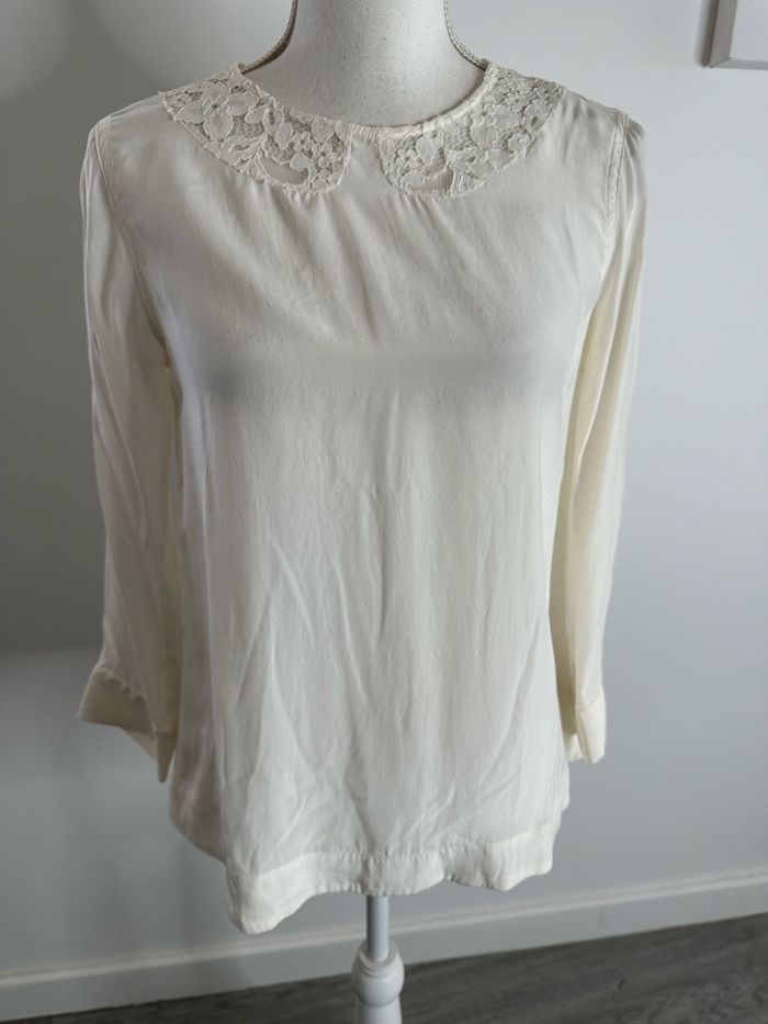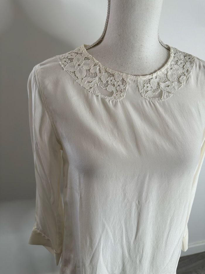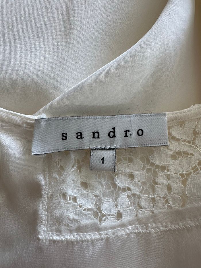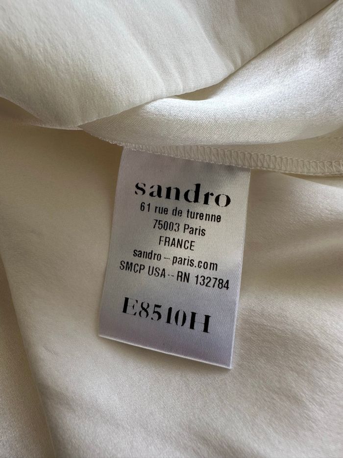 Blouse en soie blanc crème et broderies Sandro T1 36 S - photo numéro 2