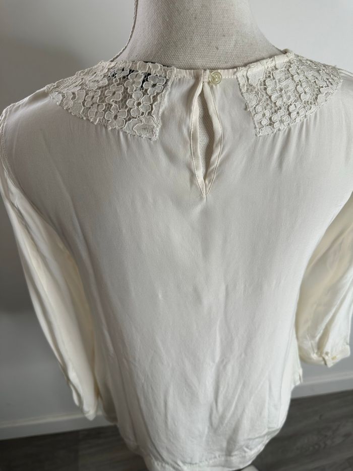 Blouse en soie blanc crème et broderies Sandro T1 36 S - photo numéro 4