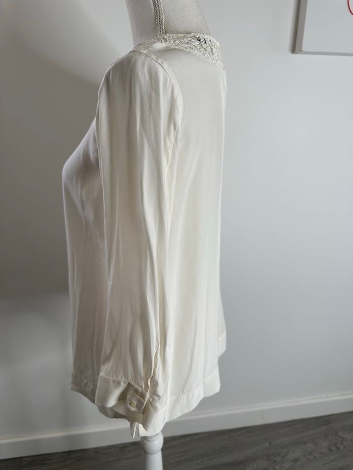Blouse en soie blanc crème et broderies Sandro T1 36 S - photo numéro 6