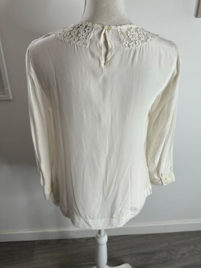 Blouse en soie blanc crème et broderies Sandro T1 36 S - photo numéro 3