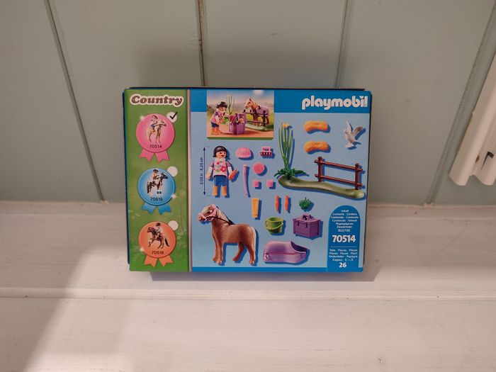 produit neuf scellé 70514 playmobil country envoi rapide et soigné Ce set contient 26 pièces : 1 personnage, 1 poney, et des accessoires (carottes, seau, licol…).