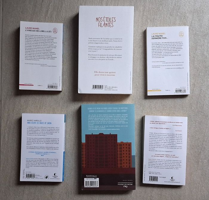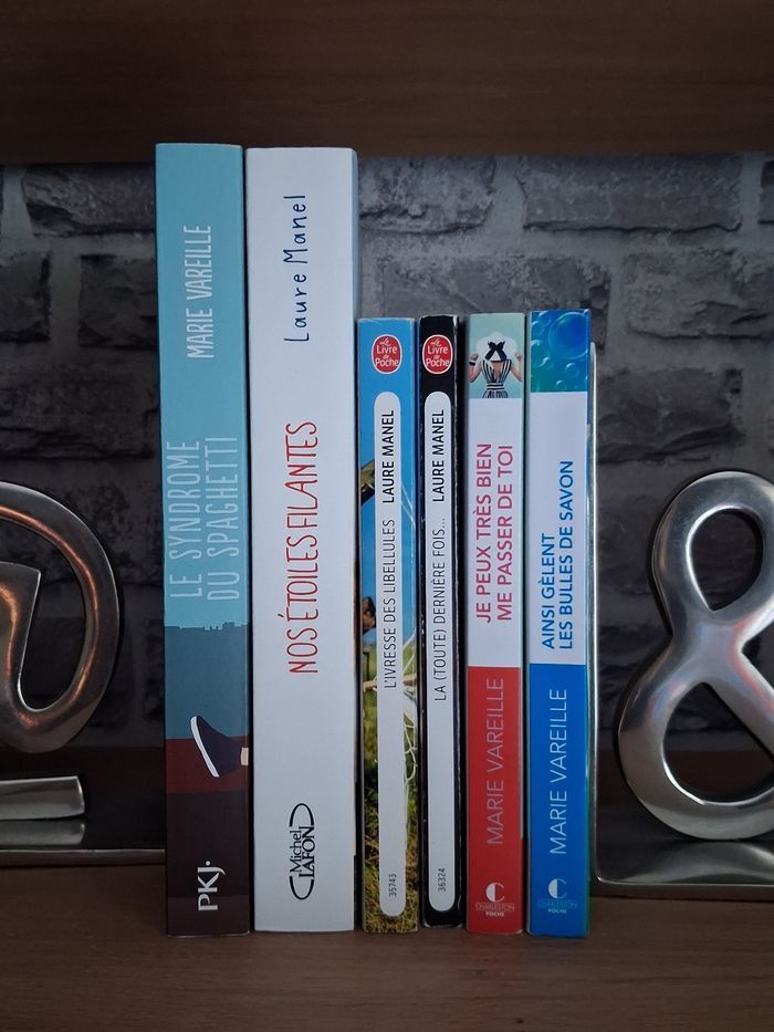 ⚠️Cette annonce comprend 4 romans. 2 ont été vendus⚠️ Nos étoiles filantes (vendu) Ainsi gèlent les bulles de savon (vendu) ✏️ La toute dernière fois Laure Manel Edition Le livre de poche Bon état Couverture marquée Prix éditeur : 7,40 € ✏️ L’ivresse des libellules Laure Manel Edition Le livre de poche Très bon état Prix éditeur : 7,90 € ✏️ Je peux très bien me passer de toi Marie Vareille Edition Charleston Bon état - couverture et pages gondolées Prix éditeur : 8,50 € ✏️ Le syndrome du Spaghetti Marie Vareille Edition Pocket Jeunesse Prix éditeur : 17,90 € Très bon état - Couverture marquée sur un coin Livraison acceptée ou remise en main propre possible sur Paris, La Défense, Gare de Lyon, Bibliothèque François Mitterand ou Étampes