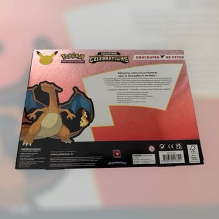 Je mets en vente ce superbe coffret PokĂ©mon CĂ©lĂ©brations â Dracaufeu V de Peter, sorti pour les 25 ans de PokĂ©mon, dĂ©sormais introuvable en magasin et trĂšs recherchĂ© par les collectionneurs.