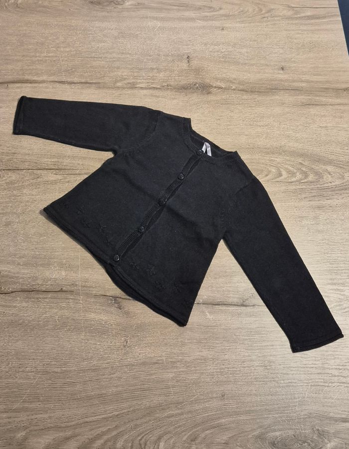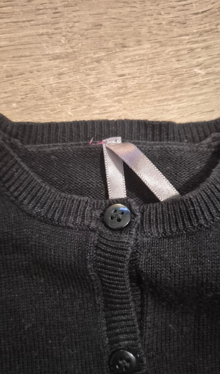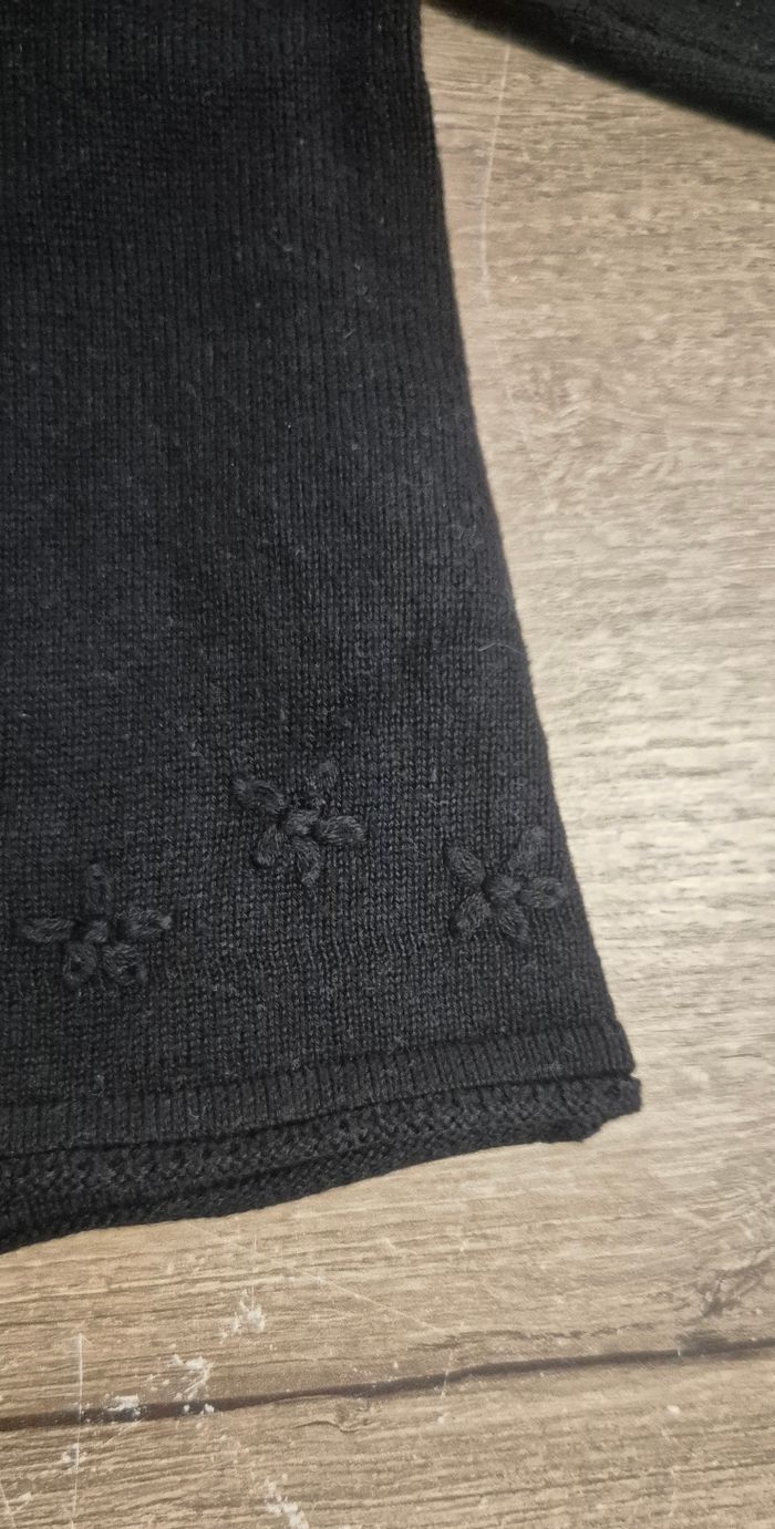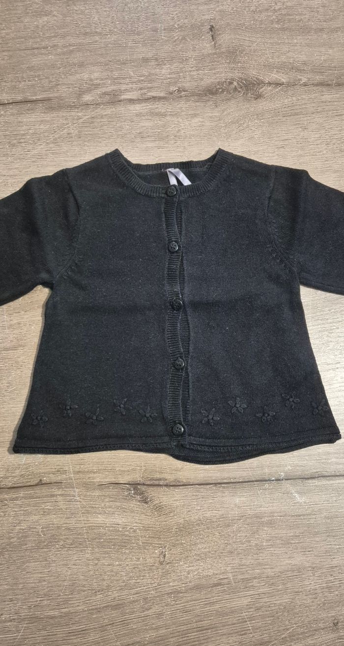Joli gilet noir avec fleurs brodés au bas du gilet Orchestra taille 12 mois Très bon état