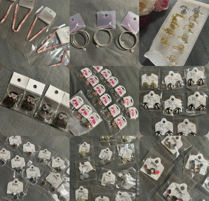 Le lot est très varié et comprend des pièces de fantaisie ainsi que des boucles d'oreilles estampillées "ARGENT" 💐