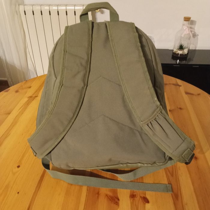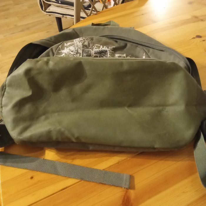 Très bon état, couleur kaki, grande capacité, 1 grande poche et une petite poche avant fermée. Poche sur bretelle pour téléphone.