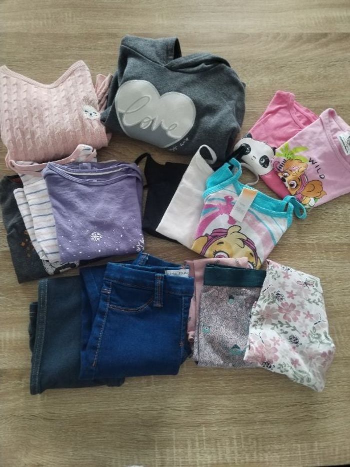 📍 2 pulls 📍3 tee shirts manches longues 📍2 tee shirt manches courtes 📍3 débardeurs 📍2 leggings 📍2 jeansen très bon etats #lotvetements #filles3ans