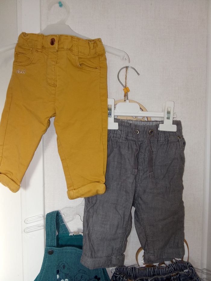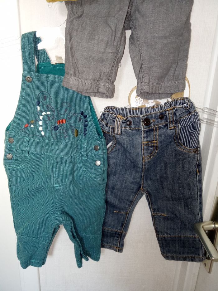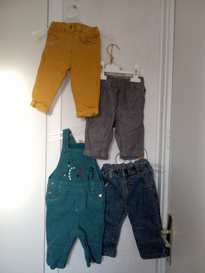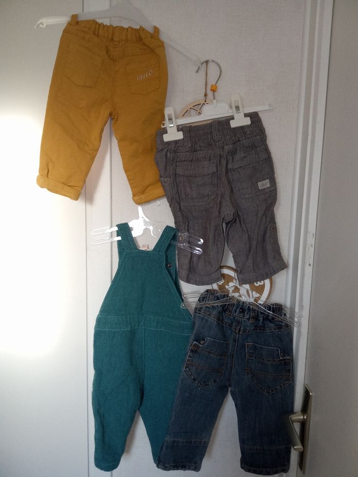 Lot de 4 vêtements hiver garçon 6 mois, salopette, jean, pantalon, bleu, moutarde vert