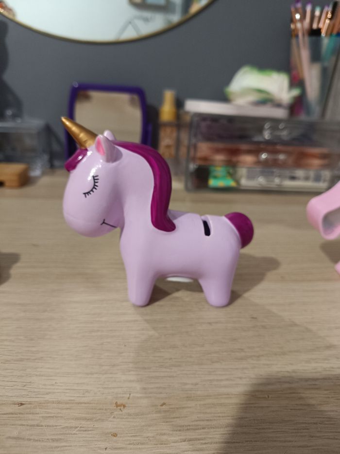Bonjour, Je vends ce lot de décoration, état neuf, la lampe fonctionne et la tirelire n'est pas cassée ni fêlée.