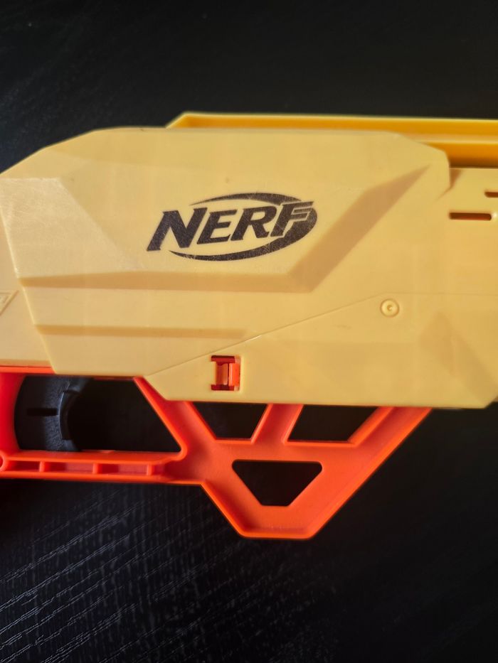 ​🔫 Contenu du Lot : ​NERF Elite Strongarm (Bleu/Blanc) : ​Le classique avec le barillet rotatif à 6 fléchettes. Facile à utiliser et très fiable. ​Note : Présente quelques éraflures sur la peinture bleue (voir photos), mais n'affecte pas le tir. ​NERF Élite Type Fusil à Pompe (Jaune/Orange) : ​Grand modèle avec une poignée à pompe pour le rechargement. ​Petit NERF Élite (Bleu) : ​Compact et discret, idéal pour les tirs rapides. ​Fléchettes Incluses : ​Environ 10-15 fléchettes bleues et jaunes sont fournies dans le petit sachet (voir photo). ​État : Bon état général. Des traces d'usure normale pour des jouets d'occasion. ​Parfait pour un anniversaire, ou pour des batailles en intérieur ou extérieur ! ​N'hésitez pas si vous avez des questions sur l'un des modèles. Envoi rapide et très bien protégé.