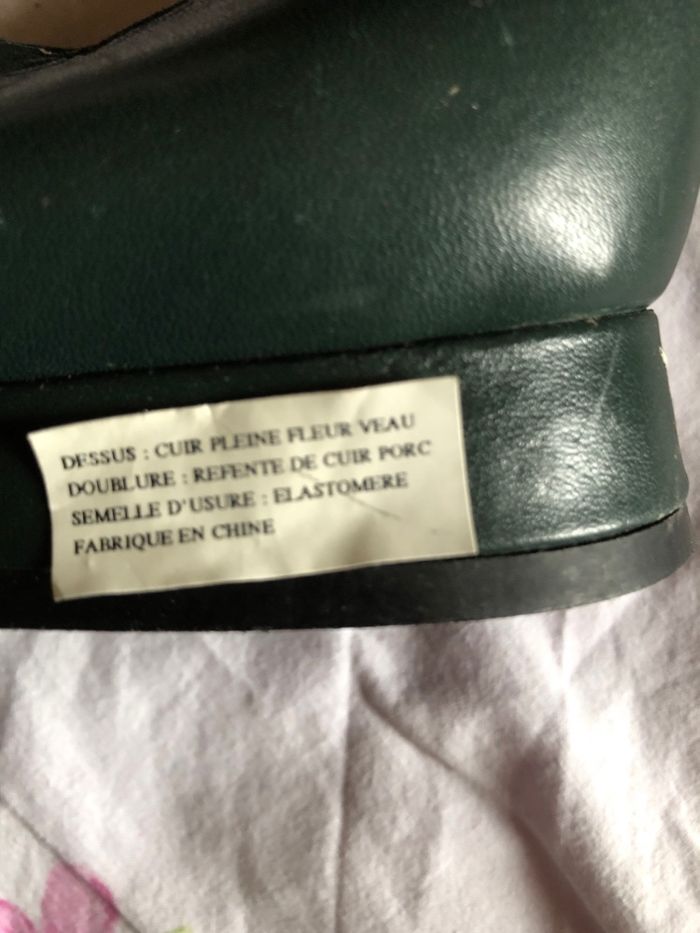 chaussures caoutchouc sur le dessus cuir .doublure cuir.semelles élastomère.pointure 39.bon état.