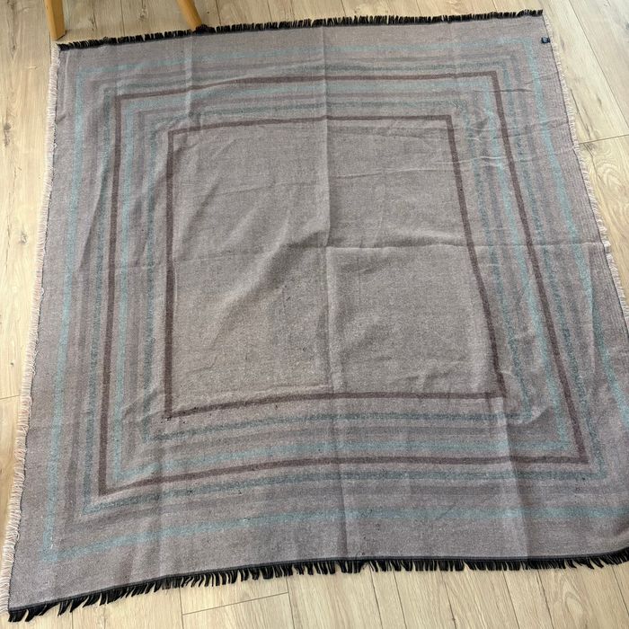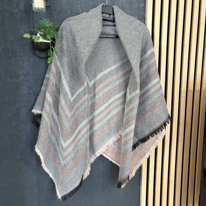 Coloris gris, roses, blanc, marron, différente couleur selon le côté, franges sur le bord.