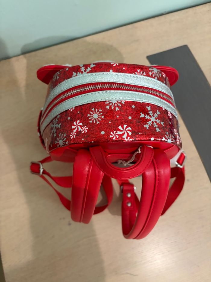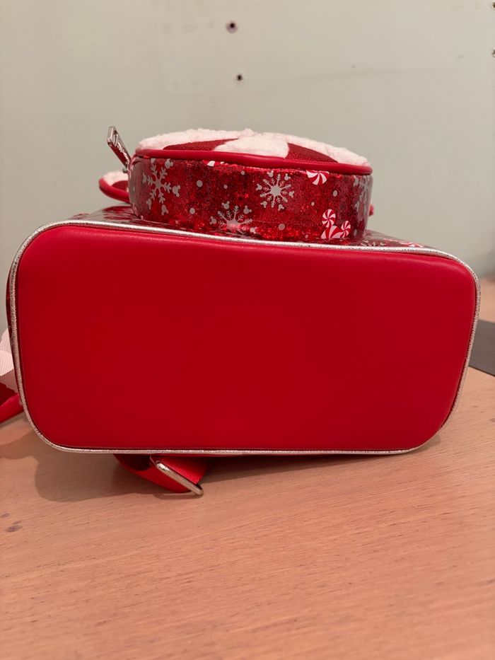 Sac Loungefly Disney Parks édition Noël, motif Mickey Peppermint rouge et blanc brillant 🎁