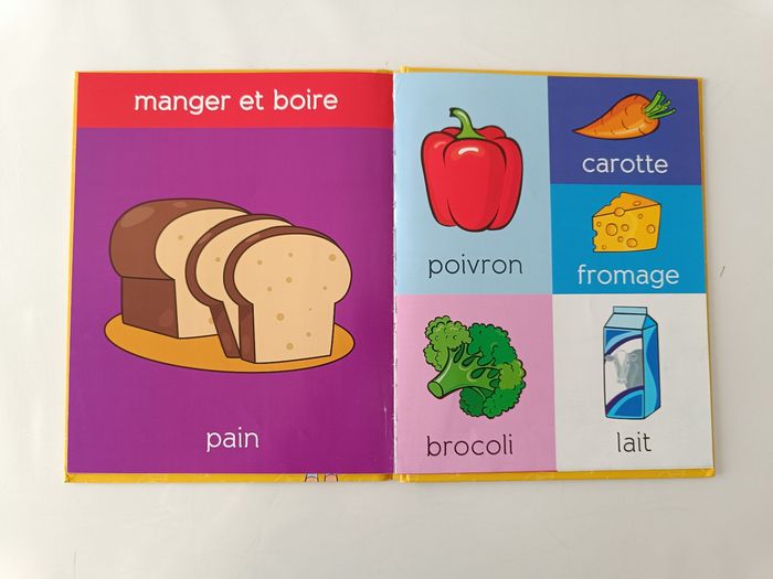 Différents thèmes : les vêtements, le corps, à l'intérieur, à l'extérieur, animaux domestiques, manger et boire, véhicules.