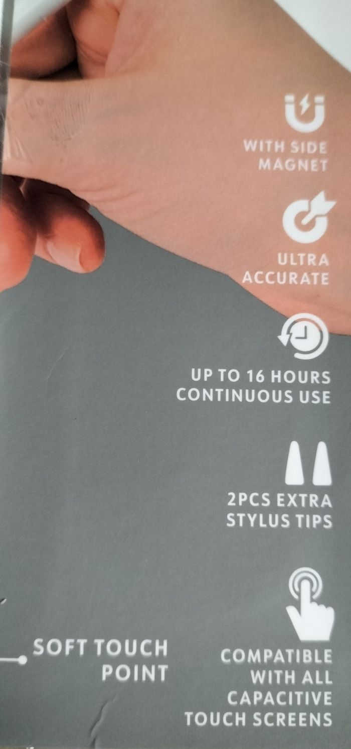 « Stylet pour tablette acheter à mais malheureusement pas compatible avec android, seulement sur IPad. Vendu avec chargeur et 2 embouts de rechange. Emballage déchiré croyant qu'il allait aller sur ma tablette mais non donc jamais servi 15€