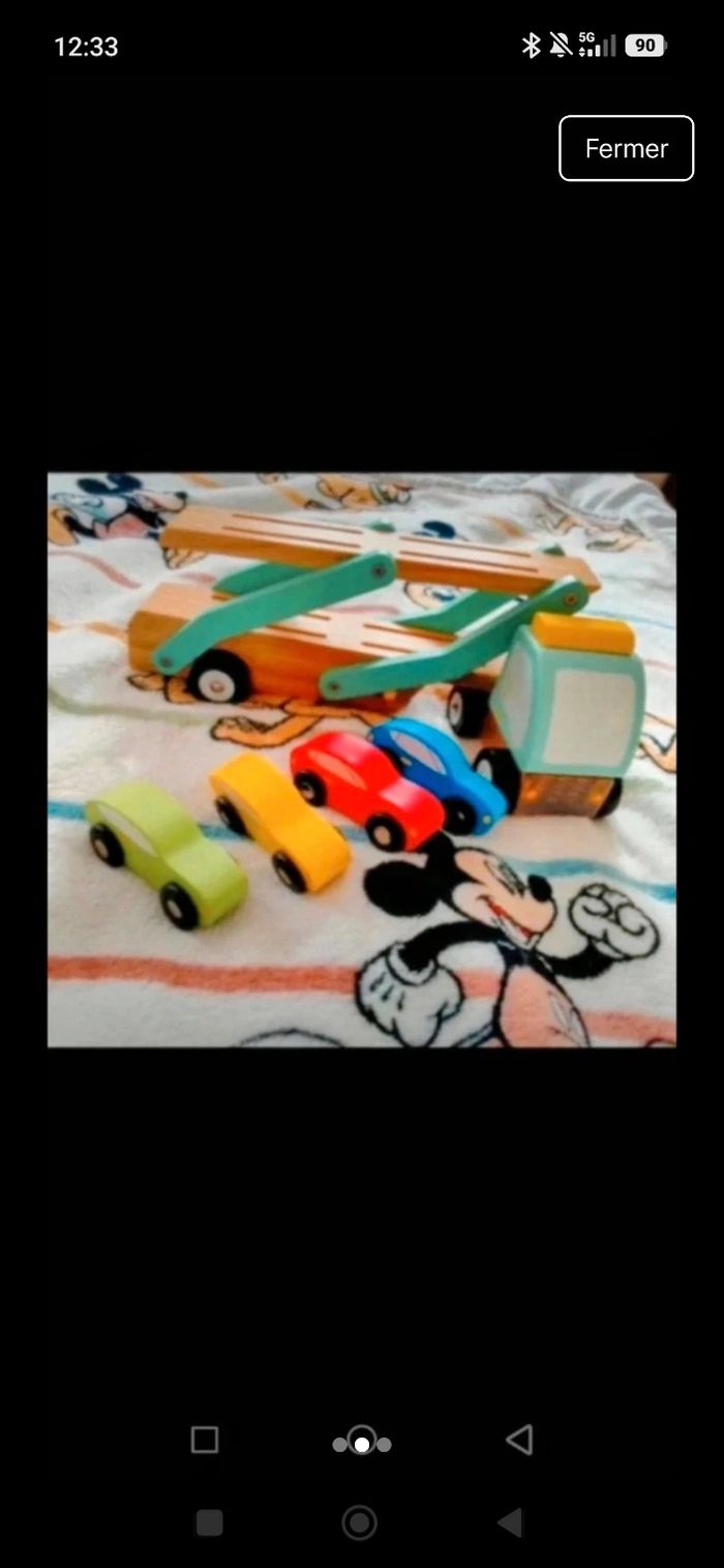 Transporteur de voitures avec 4 voitures Très bon état,en bois