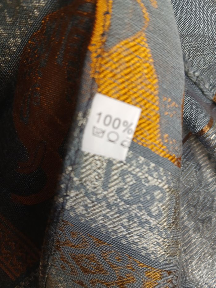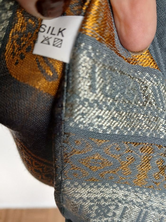 Matière de Luxe : 100% Soie (étiquette visible), très douce, légère et agréable à porter.
