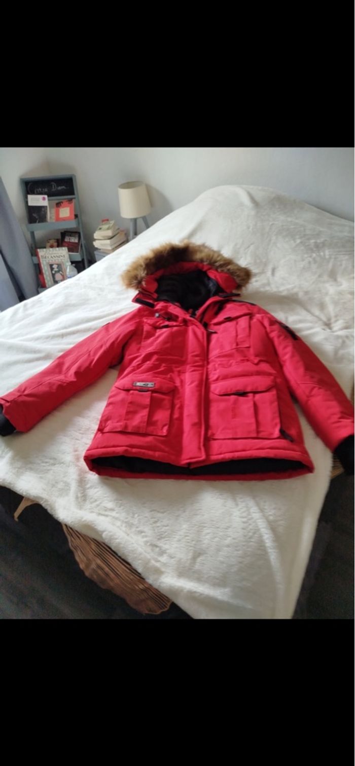 Belle doudoune rouge neuve Multiple poches Parka pour ski ou autre Canadian Peak Taille 3/L 5 poches extérieures 2 poches intérieures Fourrure capuche amovible Couleur rouge Valeur plus de 200€
