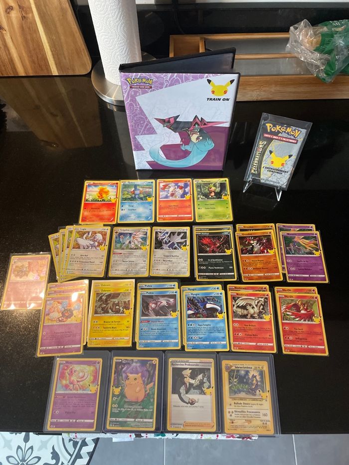Lot 34 cartes pokemon 25 ans célébration classeur et booster