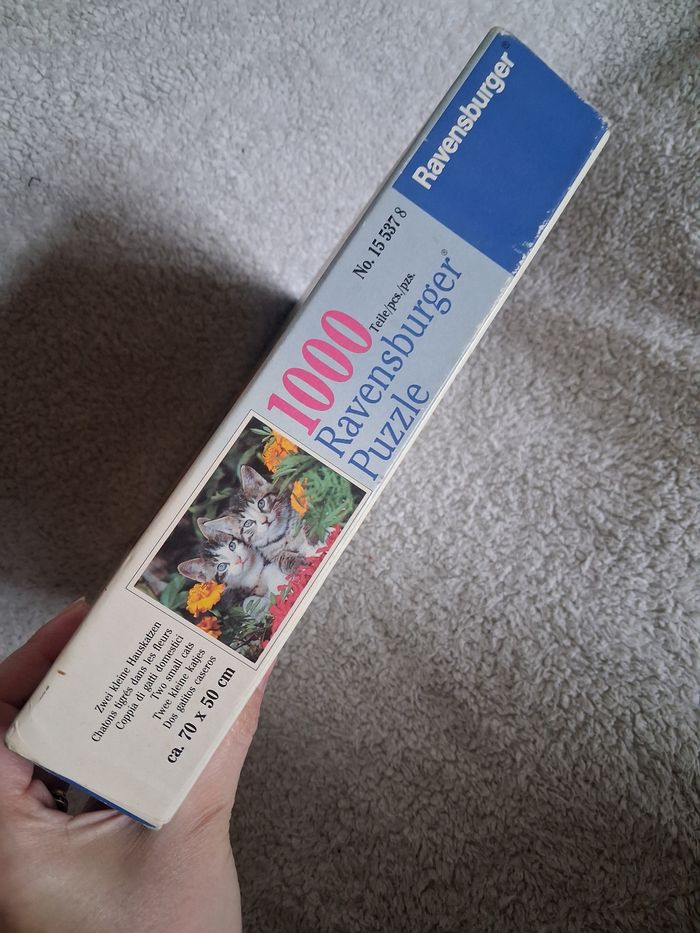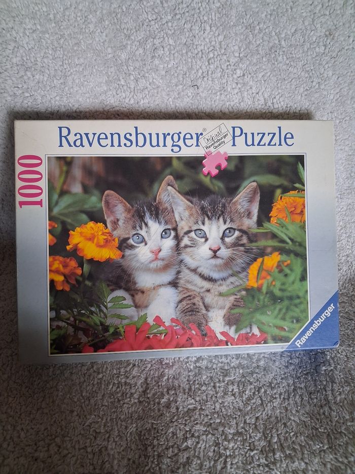Puzzle chats tigrés dans les fleurs complèt de 1000 pièces 70x50 cm En bon état
