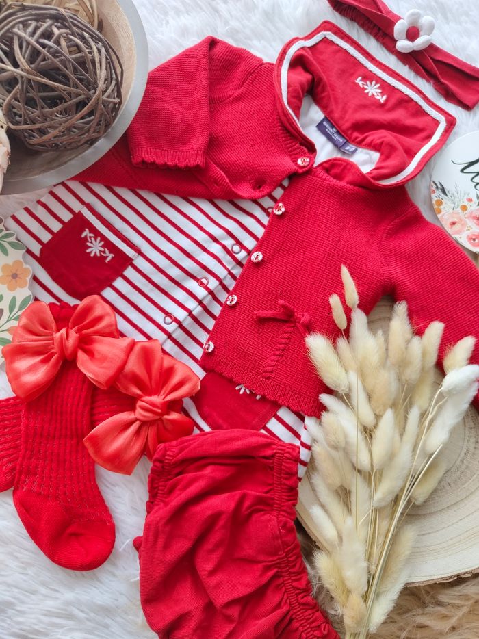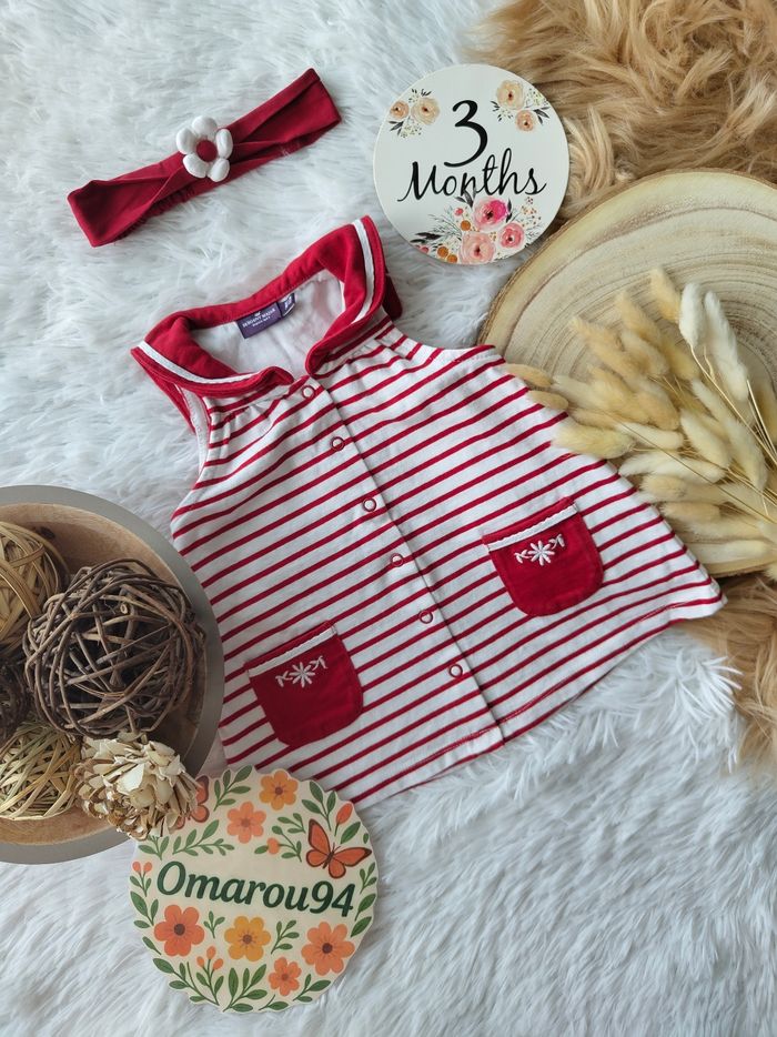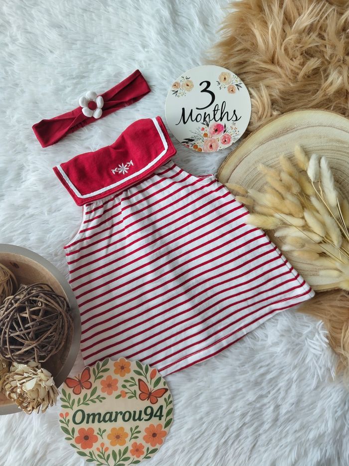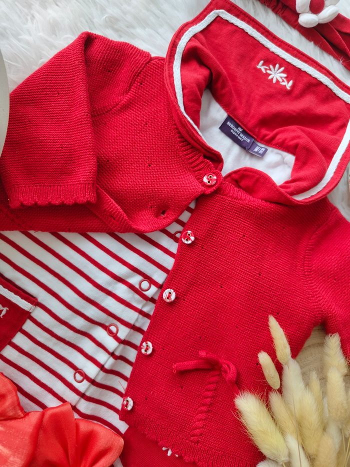 ✅ Excellent état ✅ Ensemble complet 5 pièces collection "Rouge de Garance" ✅ Gilet tricot+ robe marinière poche broderie fleuri et son bloomer+ bandeau cheveux ✅ Chaussettes hautes neuves ✅ Printemps/été 🌸 N'hésitez pas à vous abonner à mon dressing, mise en ligne régulièrement 🌸