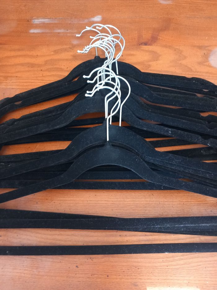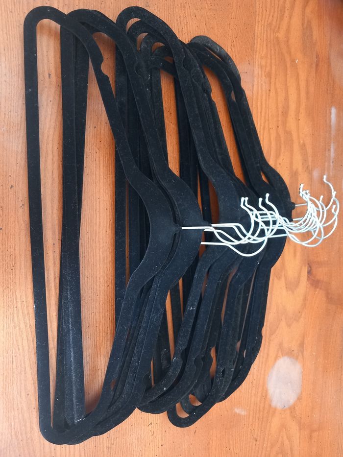 Lot 10 cintres en feutrine largeur 44,5 cm.