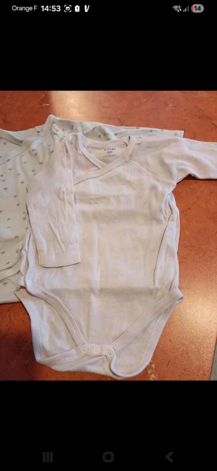 Lot de 2 bodies manches longues avec ouverture par devant. Un de marque kiabi et l autre gemo.