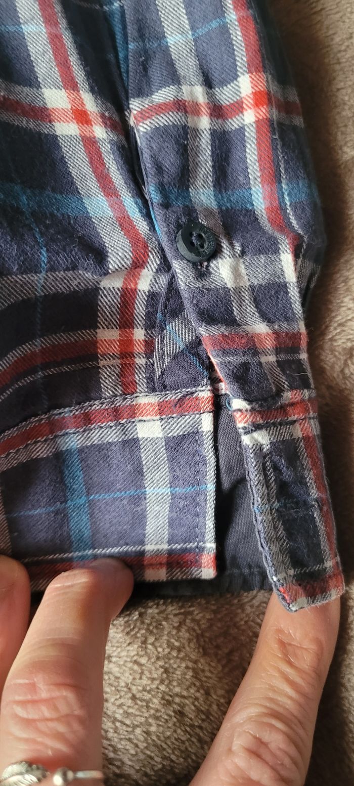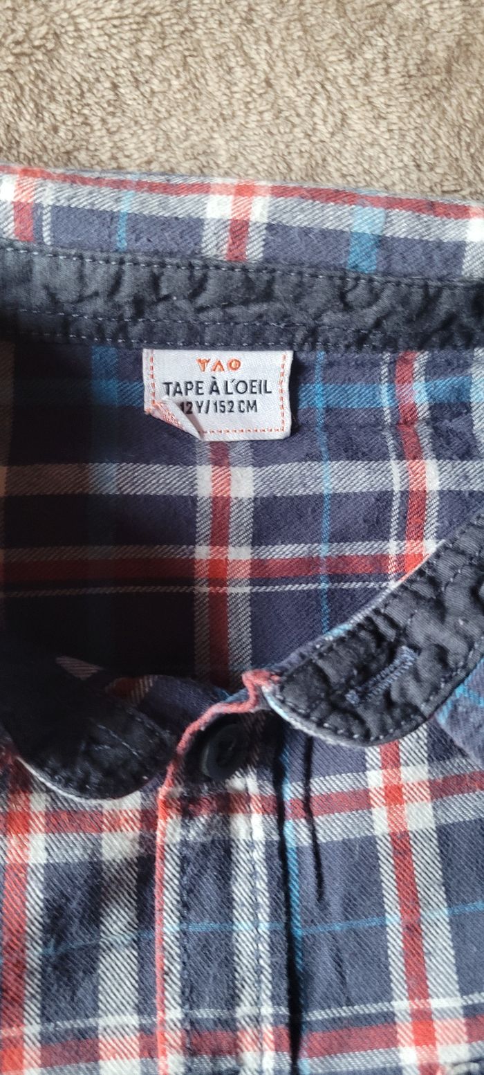 Chemise manches longues Bleu et rouge 12 ans Tape à l'œil Très bon état Manque un bouton qui est possible de remplacer ( voir photo)
