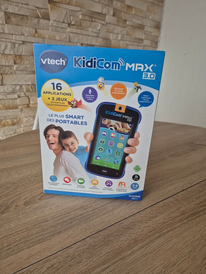 Kidicom max 3.0 de couleur bleu. Neuf, encore emballé et scellé, vendu avec le ticket de caisse acheter en novembre 2025 donc garantie 2ans. Maison non fumeur sans animaux Envoi format petit colis pour vous économiser les frais de port Vendu 110€ en magasin