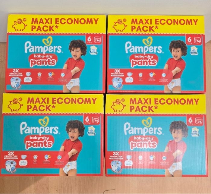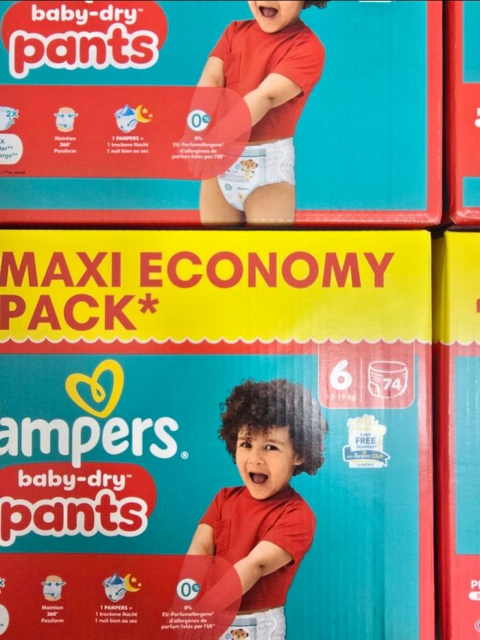 Couches-culottes Pampers Baby-Dry Pants offrant confort et maintien pour le quotidien 👶✨ Taille 6, adaptée aux enfants de 13 à 19 kg. Lot avantageux de 296 couches.