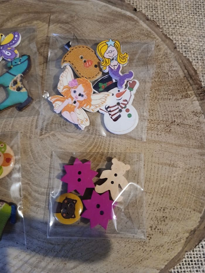 Lot de 4 sachets de boutons. D'autres tissus ruban boutons perles et accessoires biais ect... de dispo ds mon dressing n'hésitez pas à jeter un coup d'œil ou à me demander.