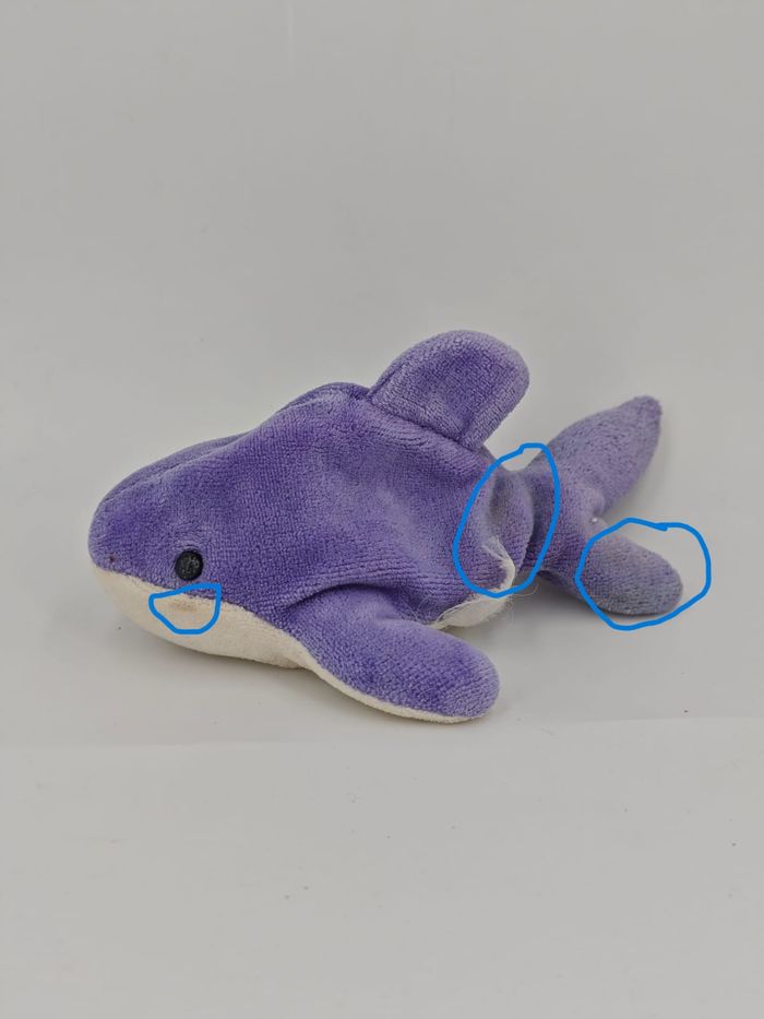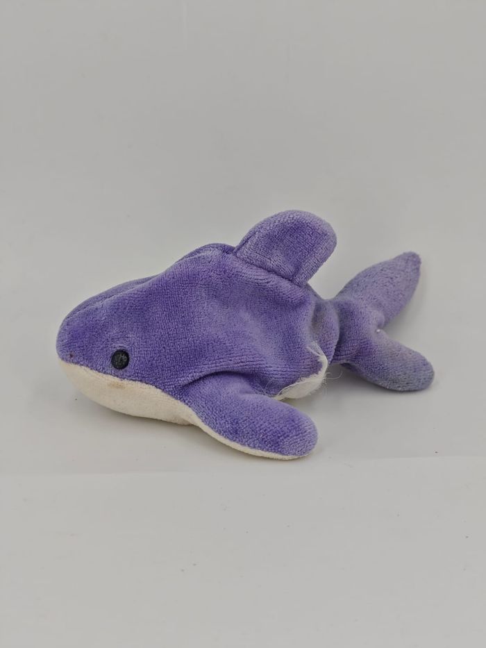 🦈 Mini Peluche Requin ou Dauphin Blanc et violet Microbilles dans le corps Vintage, marque inconnue 📏 Dimension : Longueur 18 cm environ ✨ État : Occasion, bon état, des tâches sont présentes 👀 Vous achetez la peluche que vous voyez sur les photos 🚭 NON FUMEUR et sans odeurs d'animaux 📬 Envoi rapide sous maximum 3 jours #alsalierequin #alsaliedauphin #alsalievintage