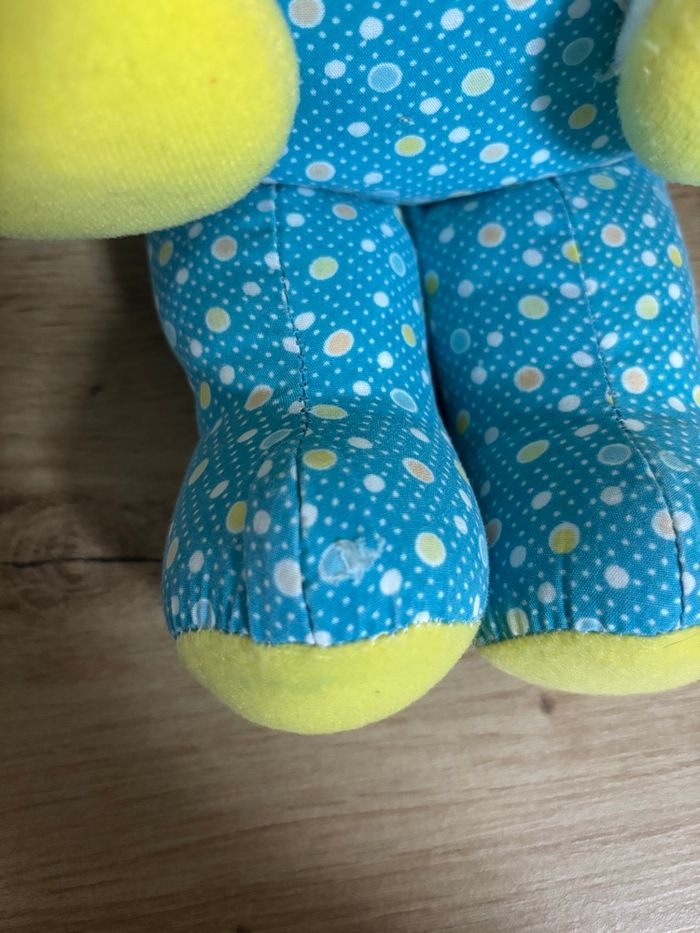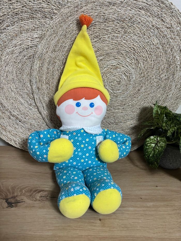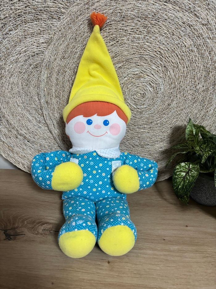 Vintage poupée garçon bleu jaune pouet fisher Price 1984