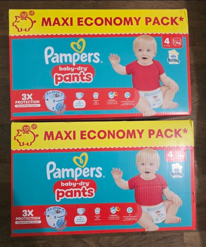 Couches-culottes Pampers Baby-Dry Pants offrant confort et maintien au quotidien 👶✨ Taille 4, adaptée aux enfants de 9 à 15 kg. Lot pratique de 188 couches.