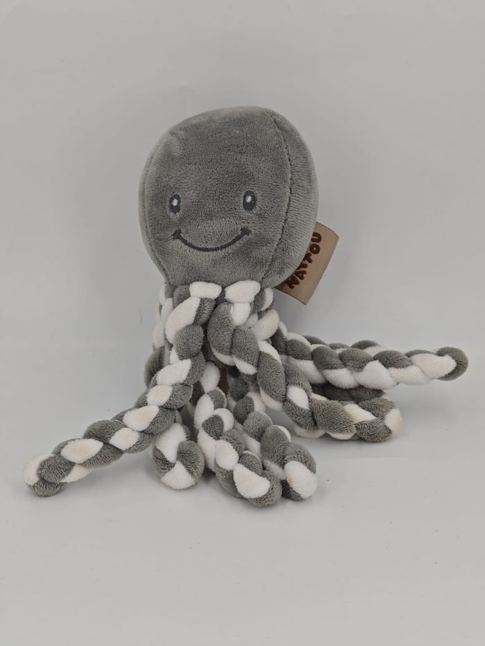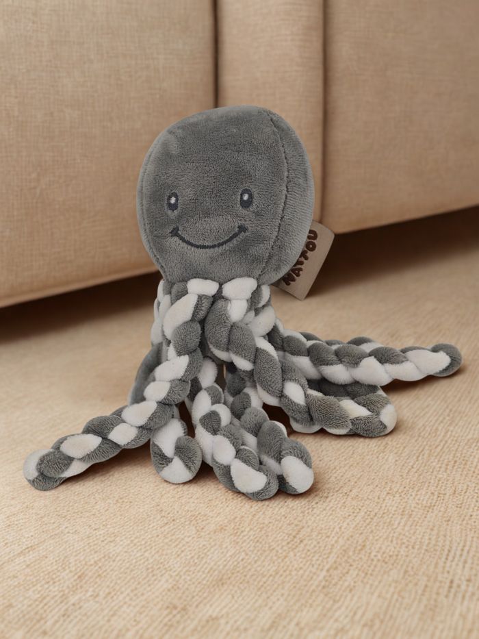 🐙 Peluche Doudou Pieuvre Octopus Poulpe Gris anthracite et blanc