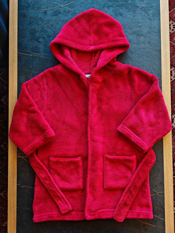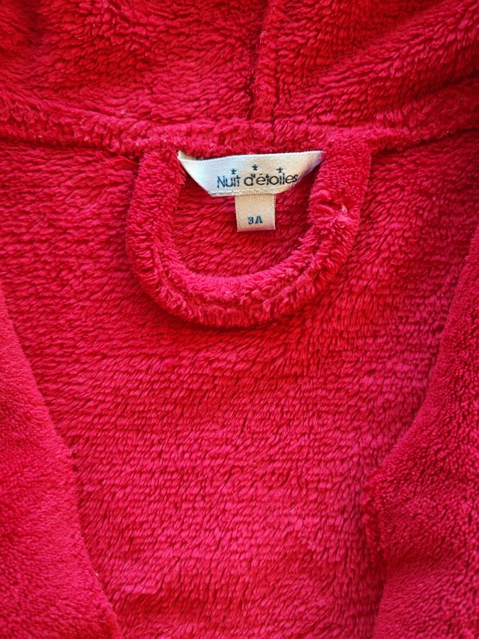 Jolie robe de chambre rouge Nuit d'Etoiles, 3 ans, en très bon état, porté par un seul enfant. En polyester, toute douce, se ferme avec une ceinture intégrée à la robe de chambre. Pour fille ou garçon.