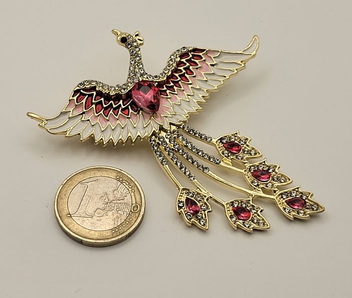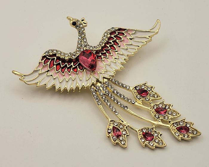 BROCHE PHENIX ROSE FONCE STRASS ! NEUF ! - photo numéro 1