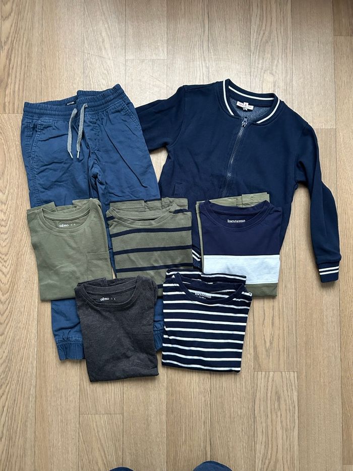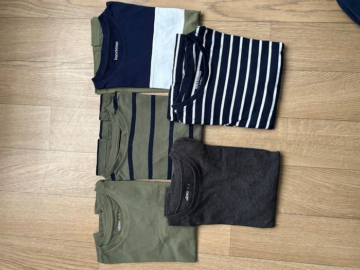 5 tshirts manches longues, couleurs bleu marine kaki blanc et gris, 3 Gemo et 2 in extenso, comme neuf